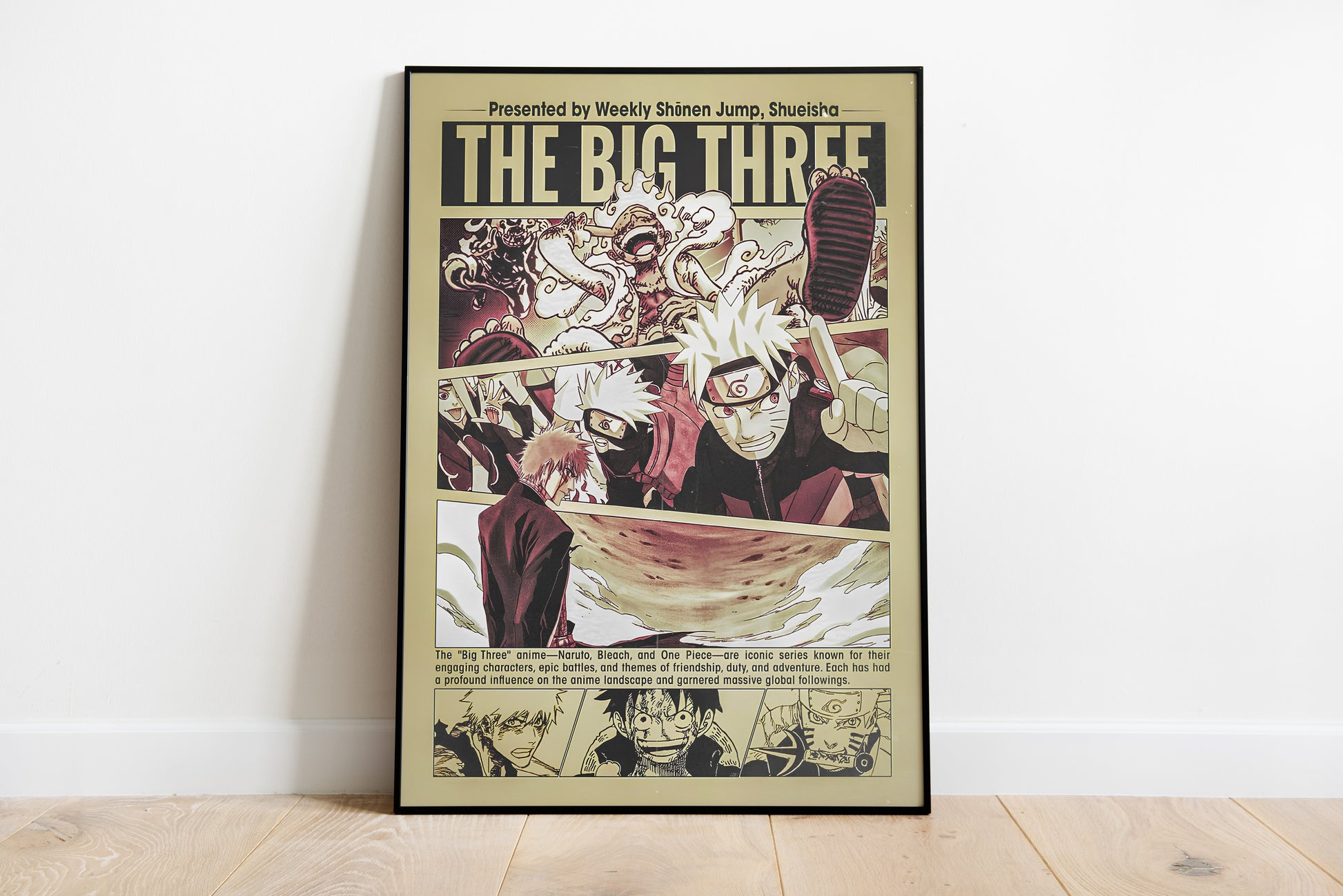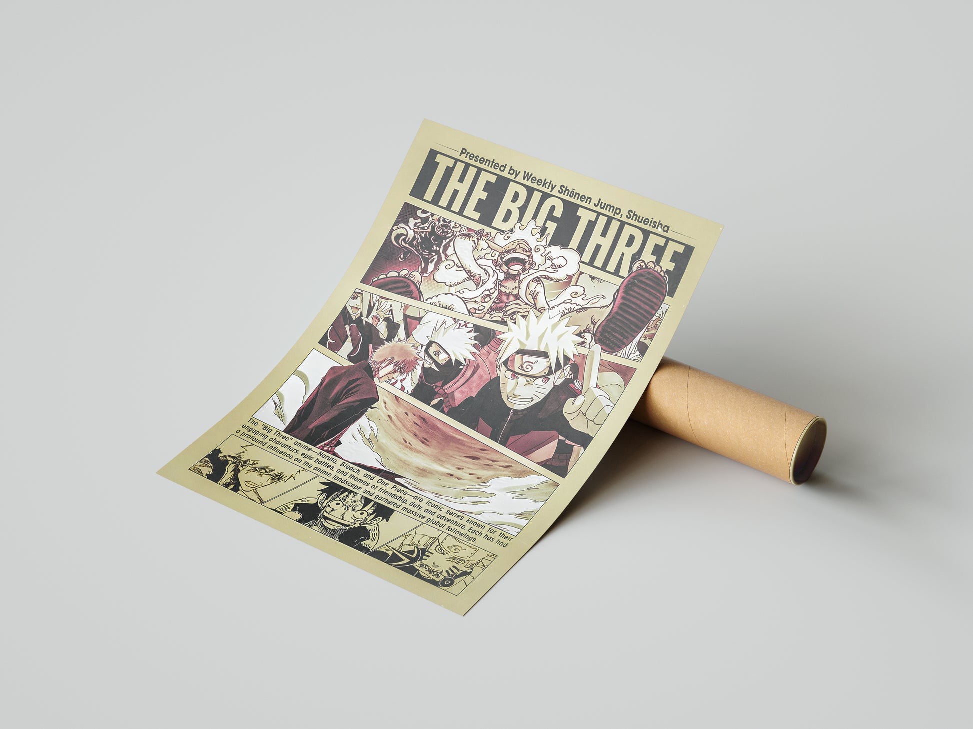 This poster features popular characters Naruto, Luffy, and Ichigo. A must-have for any fan, it showcases the impressive artwork and dynamic personalities of these beloved characters. Perfect for adding a touch of excitement and personality to any room.